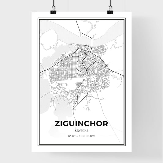 Ziguinchor Senegal - Scandinavian Style City Map for Modern Home Decor