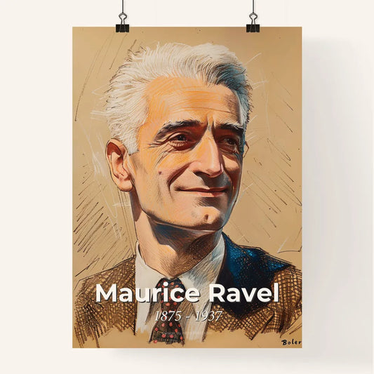 Elegant Portrait of Maurice Ravel: Captivating Contemporary Art Print on Beige, Perfect for Home Decor and Unique Gifting