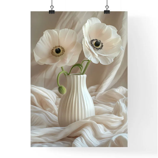White Vase with Flowers, Minimalist Melancholy, Glass Art, Translucent Water, Asymmetric Balance, Dreamy, Painting