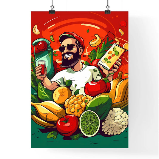 Man Holding A Juice And A Variety Of Fruits Art Print