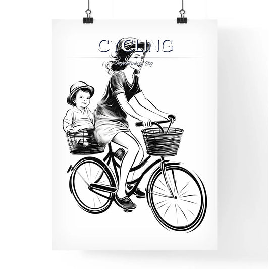 Woman Riding A Bicycle With A Baby In Baskets Art Print