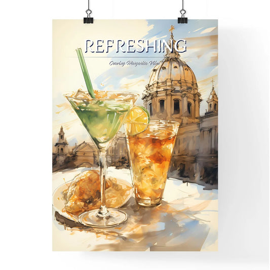 A Poster of classic margarita cocktail - A Painting Of Drinks On A Table