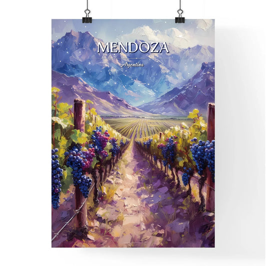 Mendoza, Argentina - Art print of a painting of a vineyard with mountains in the background