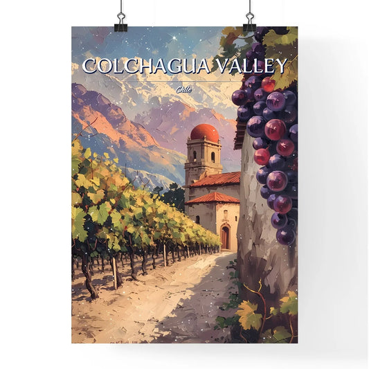 Colchagua Valley, Chile - Art print of a painting of a vineyard with a building and grapes