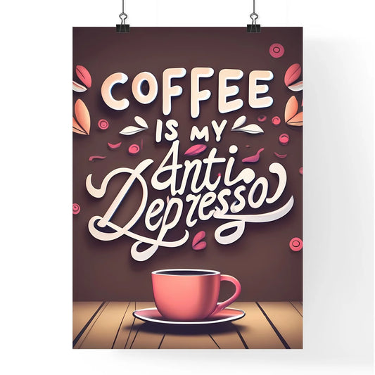 Coffee Is My Anti-Depresso - A Cup Of Coffee On A Table Art Print