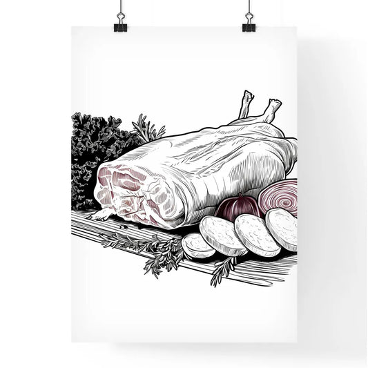 Piece Of Meat With Vegetables On A Cutting Board Art Print