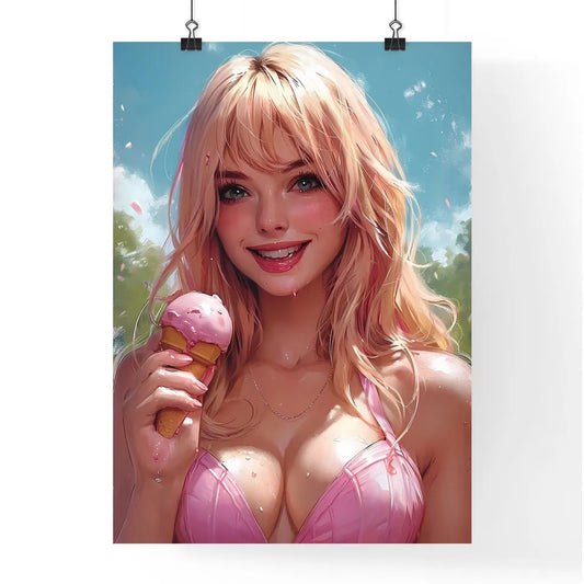 Retro poster - Art print of a woman in a garment holding an ice cream cone
