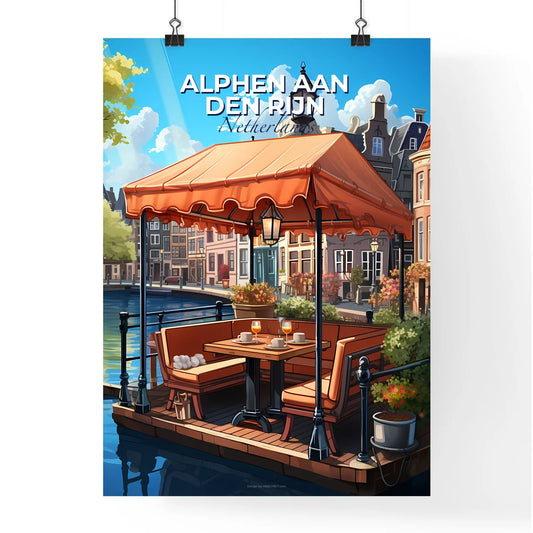 Alphen Aan Den Rijn, Netherlands, A Poster of a table and chairs on a dock by a river