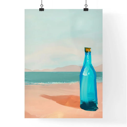 Abstract Blue Painting with Japanese Sake, Delicate Landscape, Animation Still, Bottle in Desert, Vibrant Art