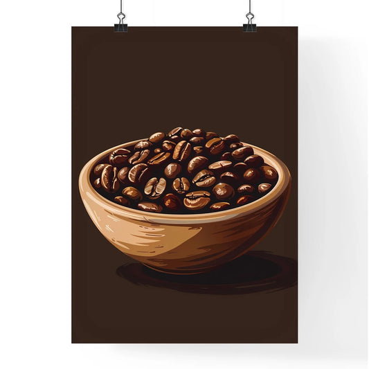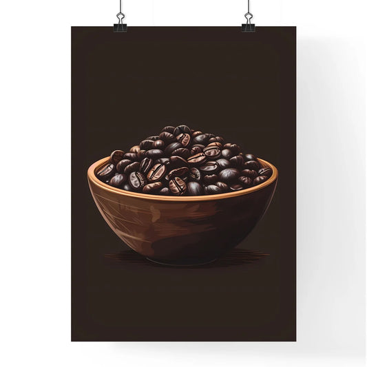 Vibrant Painting of Coffee Beans in a Bowl on Dark Background, Showcasing the Art
