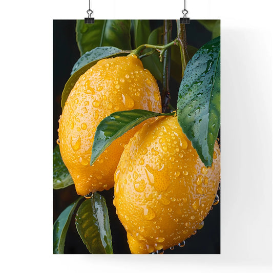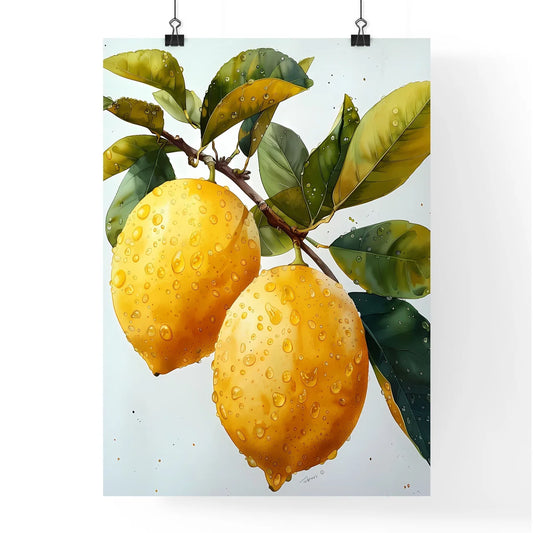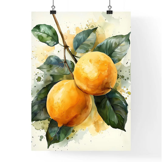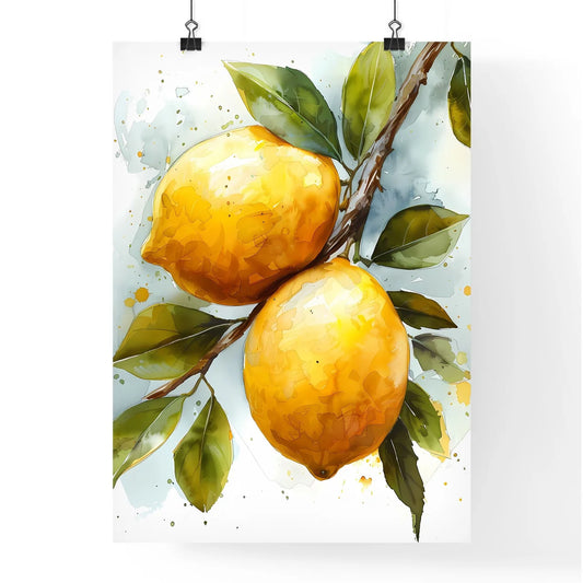 Painting of Two Lemons on a Branch, Vibrant Watercolor Art, Abstract, Modern, Digital, Traditional, Illustration
