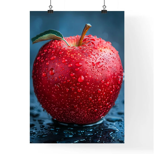 Vibrant Acrylic Painting of a Red Apple with Water Drops on a Dish