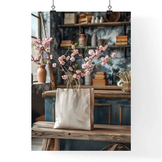 Professional Etsy Listing Stock Photo Mockup: Vibrant Flower Painting in Pink Bag, Exceptional Resolution for Flawless Clarity