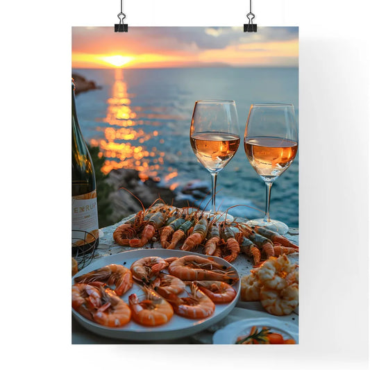 Dramatic Ocean-Themed Painting: Vibrant Seafood Still Life with Shrimp and Wine