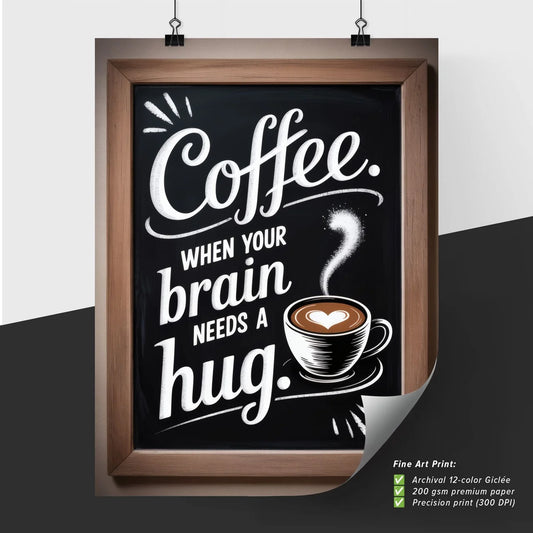Chalkboard Art: Coffee, the Warm Hug Your Brain Craves for Comfort and Energy.