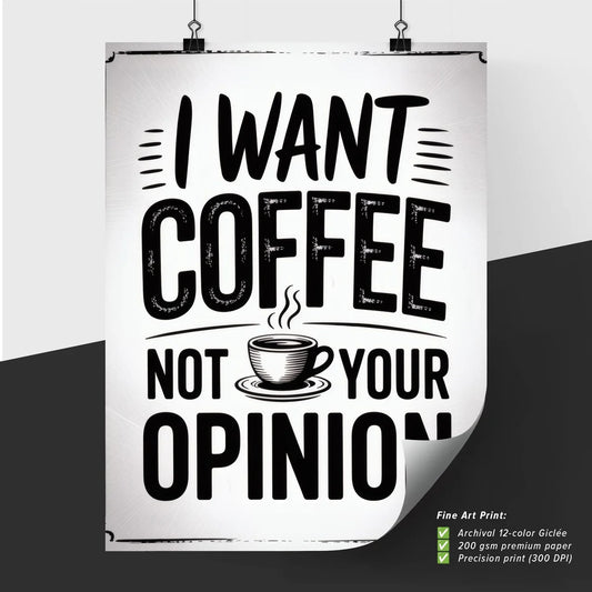 Humorous Coffee Quote: Prioritizing Coffee Over Opinions in a Charming Design