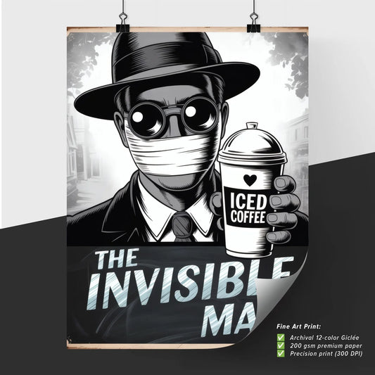 Stylish Illustration of a Mysterious Figure Holding Iced Coffee in Urban Setting, Embracing Modern Aesthetic.