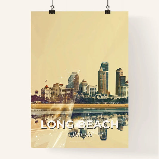 Long Beach Sunset Architecture Poster - A city skyline with palm trees and a body of water