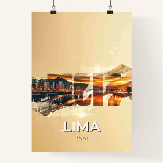 Lima Skyline Double Exposure City Icons - A cityscape with lights and a river
