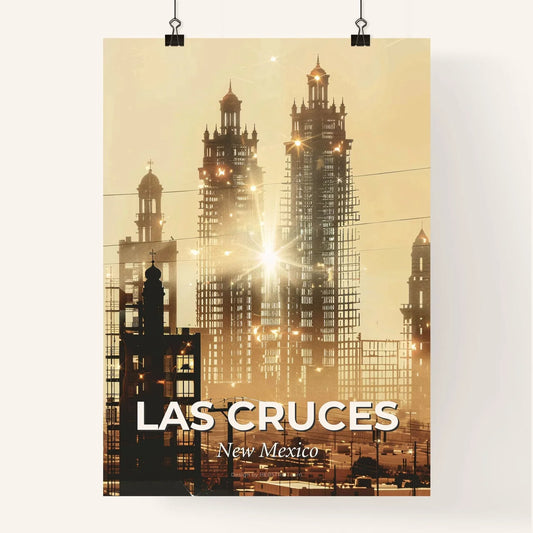 Las Cruces City Skyline Composite Art Print - A city under construction with a sun shining through the sky