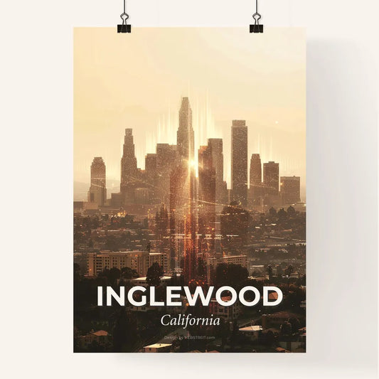 Inglewood Panorama in Double Exposure - A city with a bright light coming out of it