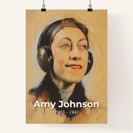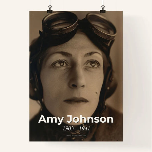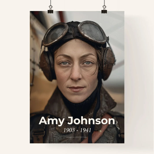 Amy Johnson: Pioneering British Aviator - Elegant Contemporary Art Print on Beige, Framed or Aluminum Options for Stunning Decor