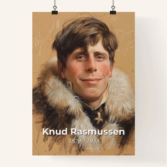Captivating Portrait of Knud Rasmussen: Arctic Explorer in Dynamic Contemporary Style on Luxe Beige Background - Perfect Home Decor