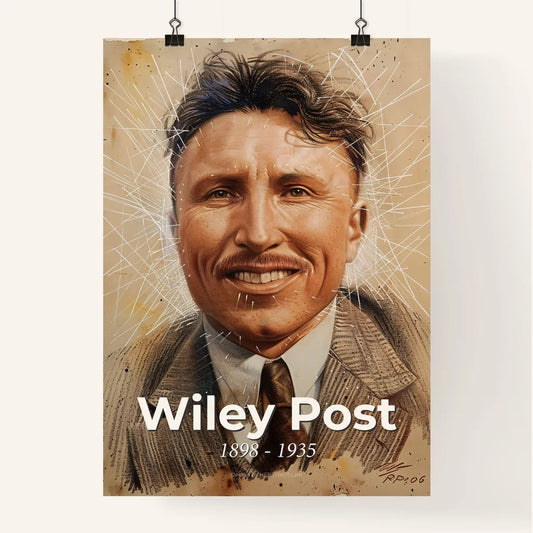 Celebrate Wiley Post: Iconic Aviator - Stunning Contemporary Portrait on Beige, Dynamic Lines, Available as Stylish Print & Framed Art!