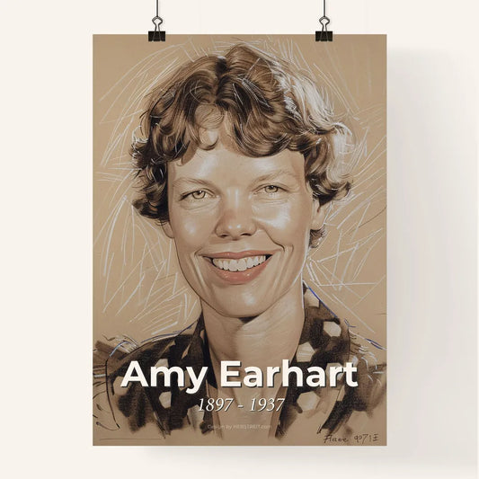 Amy Earhart: Iconic Aviator's Legacy - Stunning Ultra-Realistic Art Print in Sepia on Aluminum/Wood Frame for Home Decor