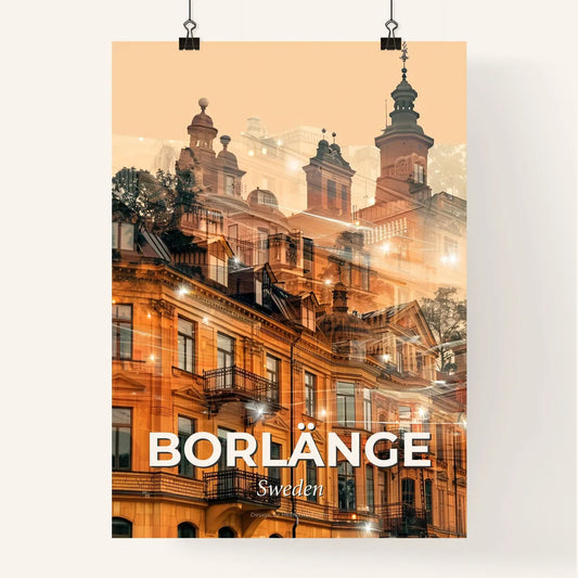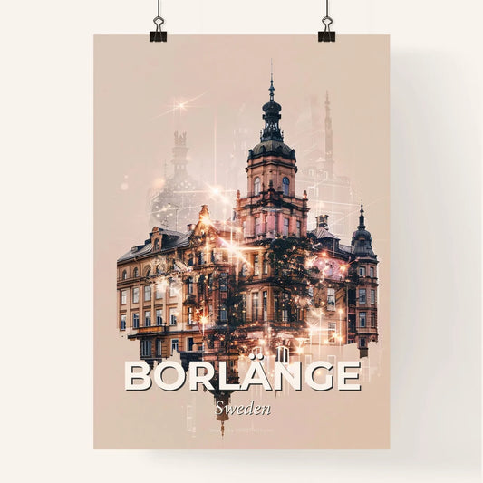 Borlange City Skyline Double Exposure Poster - A building with a tower and a tower