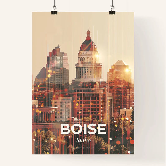 Boise Idaho City LIGHTS and ARCHITECTURE Art - A city skyline with a dome and trees
