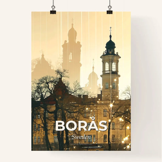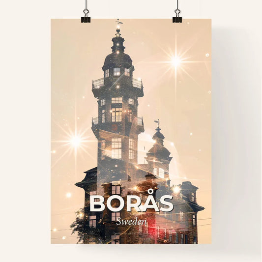 Boras Skyline City Lights Poster Art - A building with a tower and stars