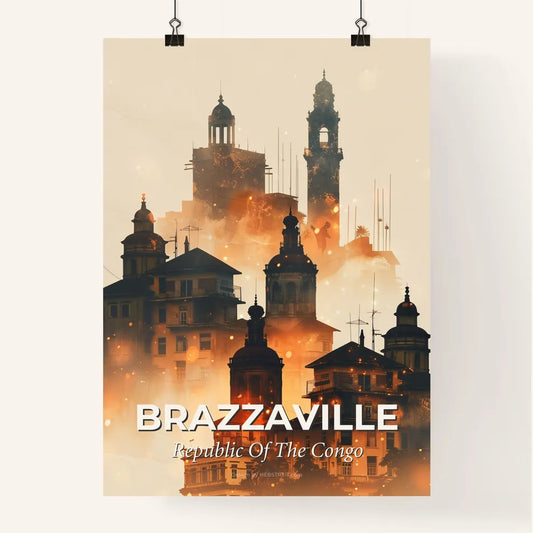 Brazzaville Skyline Double Exposure Art Poster - A city with many buildings