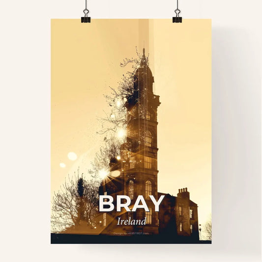 Bray, Ireland: Skyline Silhouette Poster with Sparkles - A building with a tower