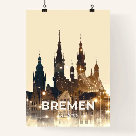 Bremen Skyline Art Deco Poster - A building with towers and lights