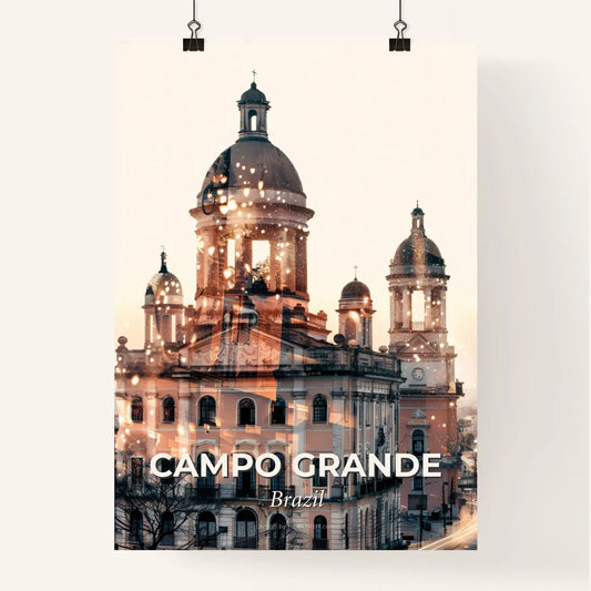 Campo Grande City Skyline Poster with Local Icons - A building with a dome and a street in the background
