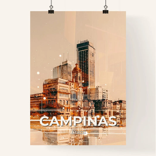 Campinas Brazil Cityscape Art Modern Poster - A city with many buildings and a body of water