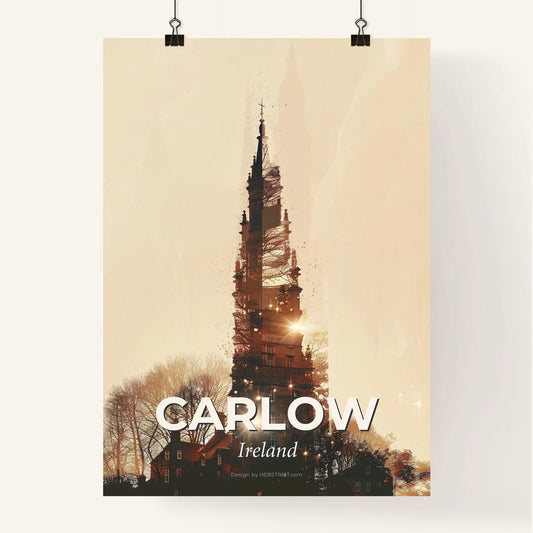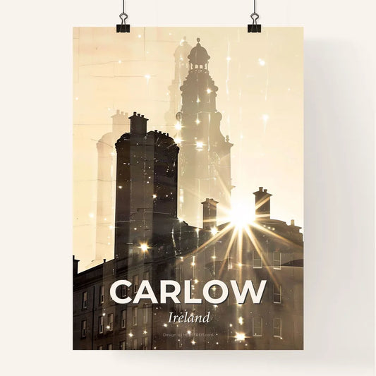 Carlow City Skyline Silhouette Double Exposure Poster Art - A building with a clock tower