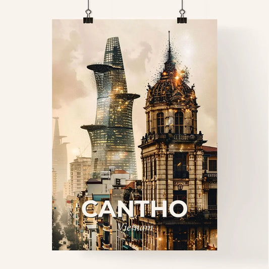 Can Tho Skyline Double Exposure Cityscape Poster - A city with tall buildings and a tower