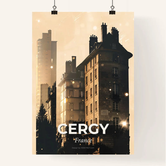 Cergy Skyline Silhouette Sparkles Beige Poster - A group of buildings with trees