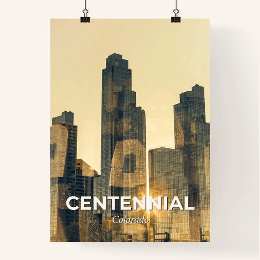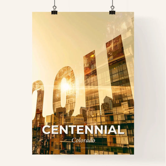 Centennial City Skyline Double Exposure Art - A group of tall buildings with the sun shining through them