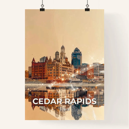 Cedar Rapids City Skyline Iconography Sparkle Poster - A city skyline with buildings and trees