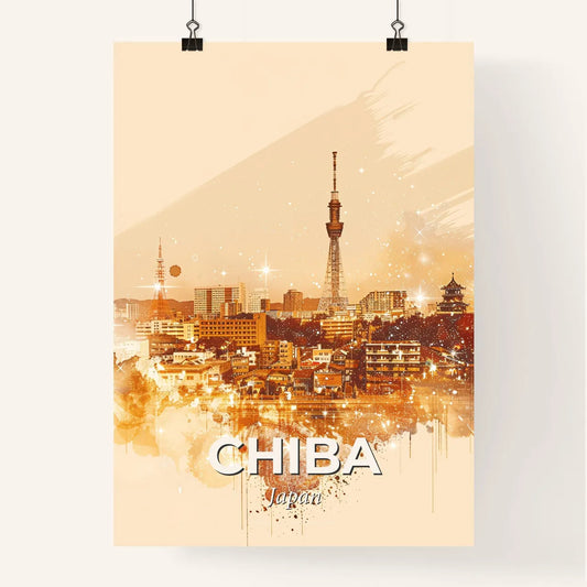 Chiba City Skyline Art Poster: Beige and Bright - A city with a river and a city in the background