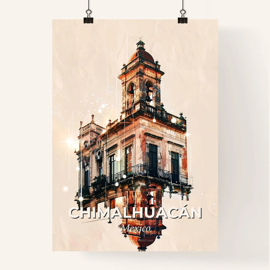 Chimalhuacan poster art iconic skyline bright sparkles - A building with a bell tower