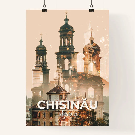 Chișinău Cityscape and Architecture Poster - A building with towers and a tower in the background