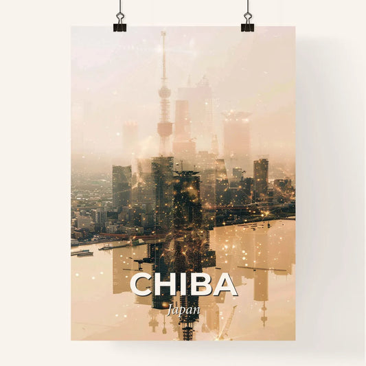 Chiba City Skyline Beige Double Exposure Art Print - A building with a tower
