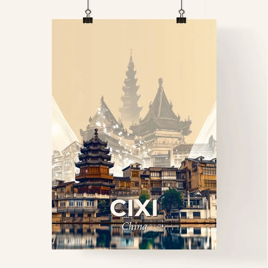 Cixi City Skyline Iconic Architecture Art Deco Poster - A city with a tower and buildings in the background