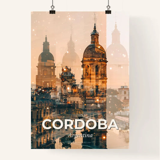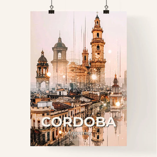 Sparkling Cordoba Skyline Souvenir Art - A city with many towers and buildings