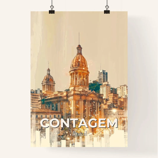 Contagem City Skyline Double Exposure Art Poster - A large building with a dome and a city skyline