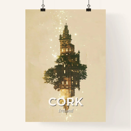 Cork Ireland Skyline Double Exposure Art - A building with a tree in the middle